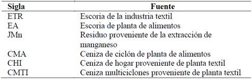 Tabla 1: Residuos industriales utilizados en la obtención de zeolitas