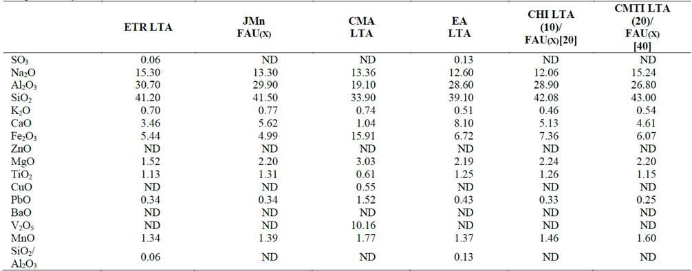 Durante este proceso de adsorción, los cationes metálicos tienden a moverse a través de los poros y los canales de la zeolita reemplazando en su desplazamiento cationes intercambiables como el sodio Na+ y el potasio K+, presentes en los materiales sintetizados como se evidencia en la Tabla 5.