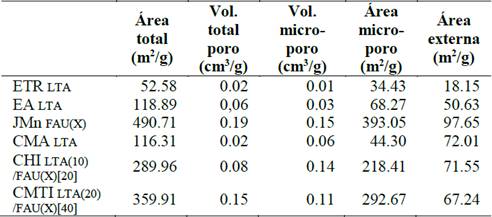 Tabla 6: Propiedades texturales zeolitas sintéticas