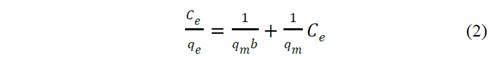 Bajo el primer modelo de Langmuir, representado en la eq. 2, la adsorción se explica como un fenómeno de quimisorción monocapa del adsorbato, cromo en este caso, sobre el adsorbente.
