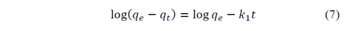El tercer modelo denominado modelo de primer pseudo-orden o de Lagergren, representado en la eq. 7, está basado en la capacidad de adsorción del sólido.