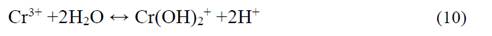 Por otra parte se puede asumir que debido al pH de la solución y la electronegatividad del cromo, se pueden formar complejos hidroxilados tal como se presenta en la eq. 10, que son fácilmente adsorbidos sobre la superficie catiónica de la zeolita.