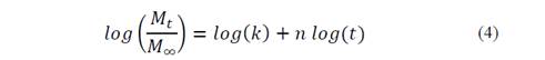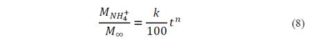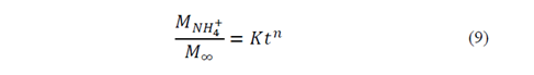 To analyze NH4 + release data, we used the Korsmeyer-Peppas empirical model [15] (eq 3), for polyvinyl alcohol hydrogel controlled-release systems in soil [16,17].