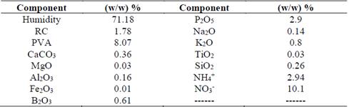Table 1: Physicochemical analysis of residual cellulose/polyvinyl alcohol, data in (m/m) %. RC = Residual Cellulose, PVA = polyvinyl alcohol.