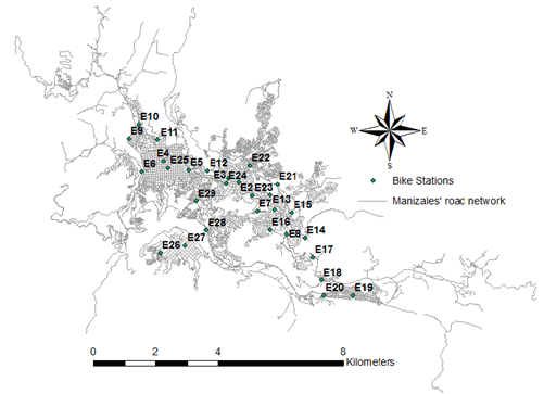 Figure 2: Bike stations that comprise the Manizales’ BSS.