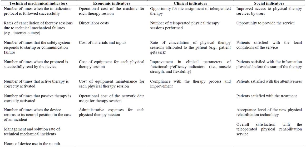 According to the information from the checklist, incident form and various clinical records, a set of indicators showed in the Table 1, was identified to evaluate the components of the teleoperated system (see Table 1).