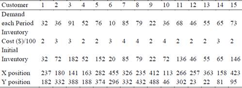 The input parameters are obtained from the instance of 15 customers and one supplier proposed by Archetti [16], increasing the amount of inventory that can be stored in each of the customers, as a strategy to produce better distribution costs and decrease the CO2 Emission. These parameters are presented in Table 1.