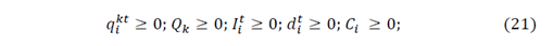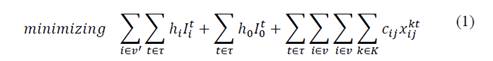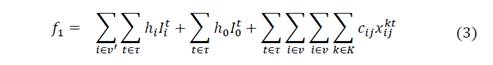 The objective function for the IRP model is presented in equation 1, subject to a set of constraints as formulated in [14,15,21,38].