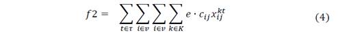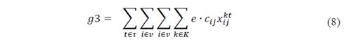 In the case of the multiobjective models, the formulation of the first model, in which the IRP costs and the CO2 are evaluated is presented in equation 2. In equation 5, the formulation for the multiobjective model separating transport costs, inventory and the CO2 emission is presented.