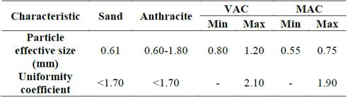 Table 3 shows the characteristics of the filter media and absorbents used.