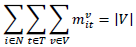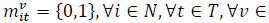 En ciertas situaciones prácticas, es deseable tratar cada vehículo individualmente como un tipo de vehículo, en vez de separarlos en grupos. Esto se hace con el objetivo de mejorar el proceso de planeación de los recursos de operación [9,10]. De esta forma, cada vehículo es considerado como un grupo diferente y se fija V, como un parámetro binario, tomando el valor de 1 si el vehículo v entra en el sistema en el terminal i, en el periodo v, y 0 caso contrario, satisfaciendo: