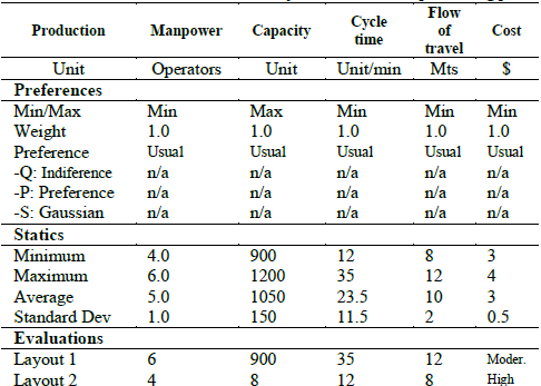 Depending on the activity of the layout design project that is being conducted, the criteria may change, for the case study some criteria have been defined to be considered for the layout evaluation, such as: