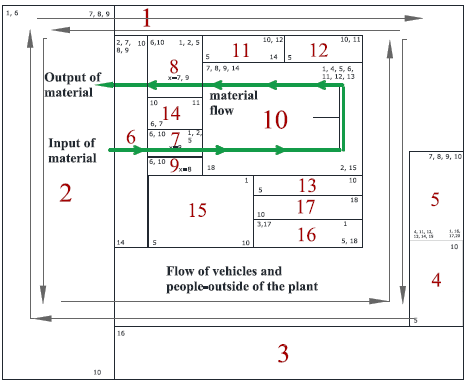 Flow of route material: Refers to minimize the distances traveled by the materials within the process.