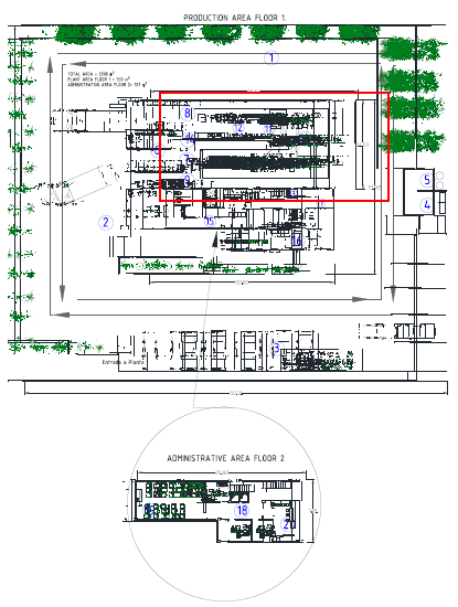 In the case of the coffee processing plant, 2 layouts alternatives were initially represented as shown in Fig.8,