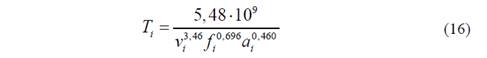 y la vida útil de la herramienta para cada pasada, Ti , puede ser calculada usando la ley de Taylor extendida: