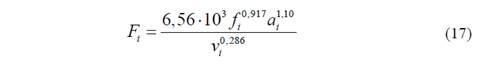 que depende de la velocidad de corte, vi , y de la fuerza, Fi , que a su vez se puede calcular por la ecuación: