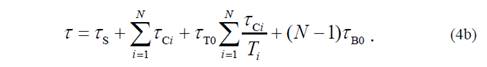 donde, τS es el tiempo de instalación y desinstalación; τC, el tiempo total de corte; τT, el tiempo de cambio de herramienta; y τB, el tiempo de retroceso de la herramienta. La ecuación 4 puede ser, entonces, rescrita de la siguiente forma:
