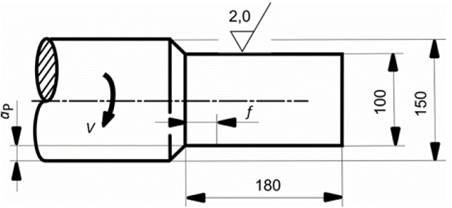 Con el objetivo de ilustrar el método de optimización propuesto, se llevará a cabo el siguiente estudio de caso. Se debe elaborar una sección de un árbol de AISI 1045, con longitud 180 mm, desde un diámetro inicial de 150 mm hasta un diámetro de 100 mm (ver Fig. 1). De acuerdo con los requisitos tecnológicos, la superficie obtenida debe tener una rugosidad no mayor de 2.0 μm (Ra).