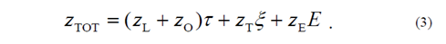 donde z L es el costo horario por mano de obra; z O, el total de costos horarios indirectos; z T, el costo unitario de herramienta; z E, el costo unitario de energía consumida; τ, el tiempo de producción; ξ, la vida útil consumida de la herramienta; y E, el consumo de energía. Por su parte, el tiempo de producción se calcula como: