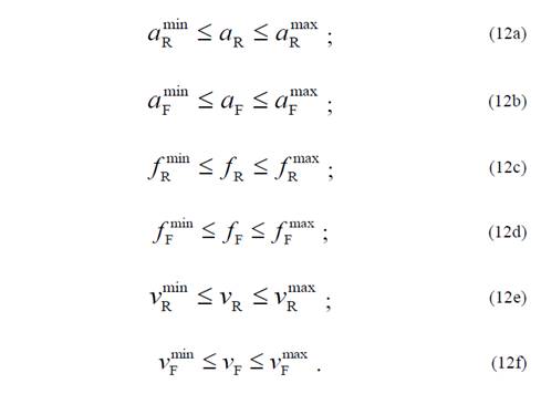 Como variables de decisión, para la optimización del proceso de maquinado, se tomaron los parámetros del régimen de corte: velocidad, avance y profundidad de corte. En el caso considerado, correspondiente a un torneado cilíndrico de pasadas múltiples, hay que tener en cuenta que la última pasada es de acabado y las previas, de desbaste. En ese caso, asumiendo que todas las pasadas de desbaste se llevarán a cabo con el mismo régimen, se tienen seis variables de decisión: la profundidad de corte de acabado, a F; el número total de pasadas, N; el avance para el desbaste, f R, y el acabado, f F; y la velocidad de corte para el desbaste, v R, y el acabado, v F.