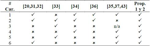 Table 1: Comparación de las propuestas con trabajos previos.