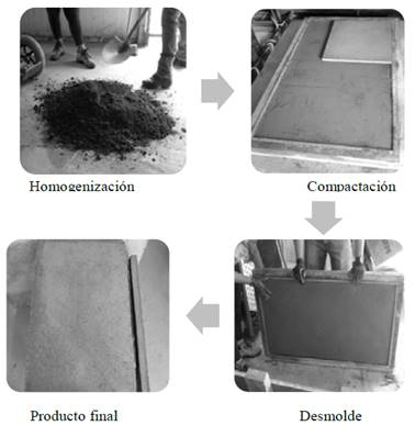 Figura 6: Protocolo de fabricación elementos tipo placa suelo - cemento - RCD.