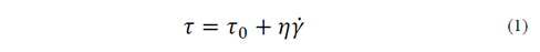 The rheological model used in this study is the Bingham equation (Equation 1), which is widely used for cement-based mixtures, because it describes its behaviour as a viscoplastic fluid in which there is a conversely stress (τ 0 ) and the rest of the behaviour is similar to a Newtonian fluid [11,12], a necessary condition to be able to apply this model is that the values of shear rate ( 𝛾 ) must be bellow 300 s-1 , this is because research has shown that for higher values the system is distorted and the stress value (𝜏) increases in an uncontrolled manner [3,13].