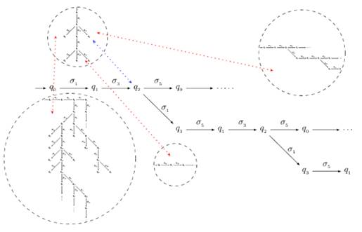 La composición síncrona de los , i=1,2$; representa al subsistema PB, donde cada uno de sus elementos pueden distinguirse en la Fig. 6.
