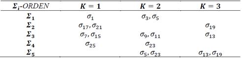 La clasificación de los eventos (k-interacciones) según la sincronización de las componentes ; es dada en la Tabla 1.