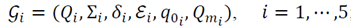 Sea Σ un alfabeto. Un Generador Finito Determinístico (GFD) G sobre Σ (Σ-generador finito), es un séxtuple (Q,Σ,δ,E,i,T), donde Q es un conjunto finito de estados, i y T⊆Q llamados respectivamente estado inicial y conjunto de estados finales, δ es un subconjunto de Q×Σ×Q de eventos y E es un subconjunto de Q×Σ de eventos activos (o habilitados) sobre los elementos de Q (ver [7]). Un evento (q,σ,p) será denotado . Así, obtenemos un grafo dirigido ponderado: los estados son los vértices y los eventos determinan los arcos, con marca en Σ. El conjunto de todas las trazas