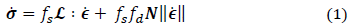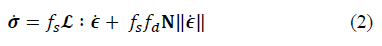 Where σ is the stress rate, є is the strain rate, fs, fd, are scalar factors, N is the non-linear stiffness (second-rank tensor) tensor defined as: