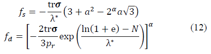 Where p r is the reference stress 1 kPa and the scalar quantity is α is calculated by: