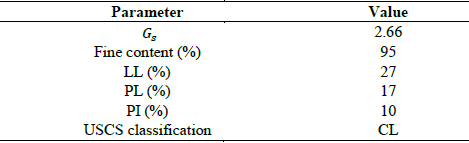 This section describes the experimental procedure conducted during this work and their results are given. The testing soil corresponds to a homogeneous Kaolin clay (silicate mineral). Characterization tests conducted on the Kaolin clay provided the following results. It presents a specific gravity of G S = 2.66, a fine content (percent passing sieve #200) of 95%, a liquid limit of LL=27%, a plastic limit of PL=17% and plasticity index of PI=10%. According to the Unified Soil Classification System USCS, the Kaolin clay is a low plasticity clay. Table 1 summarizes the results. The clay mineral corresponds to a Kaolin produced by hydrolysis of potassium feldspar. Table 2 shows its chemical composition.