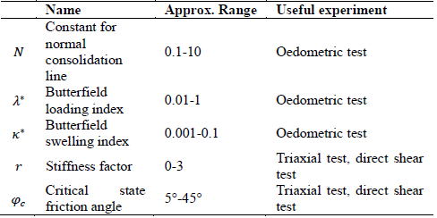 The hypoplastic model for clays requires the calibration of 5 parameters: φc, λ*, k*, N and r. A simple calibration procedure is in the following lines. Analysis and details of these parameters may be found elsewhere [30]: