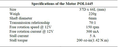 Table 3: Parameters for the motor used in the prototype