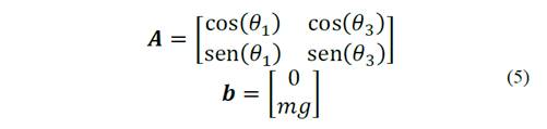 Lastly, to identify the tensions in the cables, the solution for the equation system is described as follows: