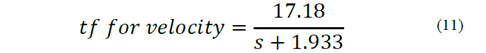 The data shown in Fig. 13, was processed using the Matlab® identification toolbox which estimates a transfer function (tf) and evaluates its accuracy or fit using system data. With a fit of 88.61%, the transfer function obtained can be observed in eq. (11).