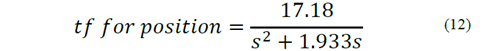 Once the velocity transfer function was established, it was integrated to the time factor to obtain a position transfer function:
