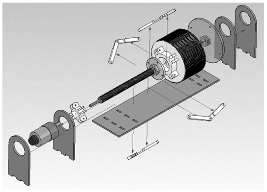 Once the actuators were chosen, it was necessary to develop a mechanical system that allowed the cable to be rolled and released. A mechanical system was implemented to ensure that the pulley radius did not change, and the alignment of the cable remained constant. To avoid distorting forces in the end effector movement, a solution was based on [10] and modified to adapt to the specific needs of the prototype.