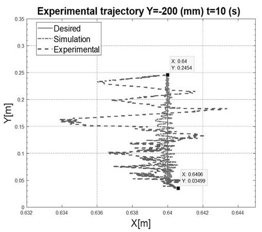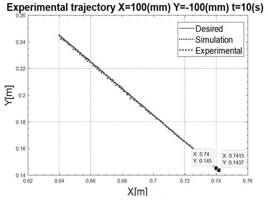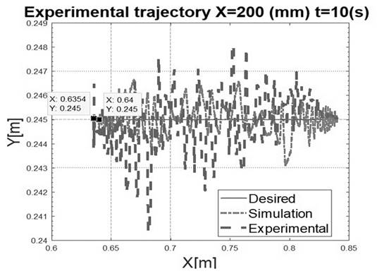 Both results (simulation and real movement), as well as the desired trajectory, are showed in Fig. 22 through Fig. 24: