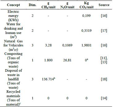 Table 2: GHG emission factors for the energy and natural resources used by the ITM, and others related to the generation of solid waste.