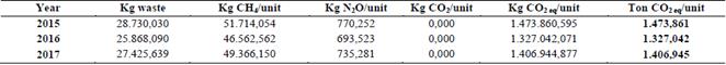 Table 6: Carbon Footprint (TonCO2 eq) and GHG emissions from the organic waste composting treatment at the ITM Robledo. Source: the authors