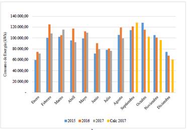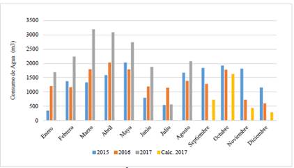 In this section, the consumption of electricity and water is described, as obtained from the invoices issued monthly by the suppliers of the different services mentioned for the years 2015, 2016 and 2017. The information is shown in Fig. 2 and in Fig. 3.