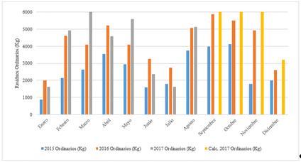 Figure 4: Generation of Ordinary Solid Waste from ITM’s Robledo campus.
