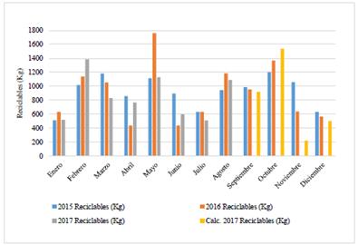 Figure 6: Generation of Recyclable Solids in the ITM’s Robledo campus.