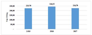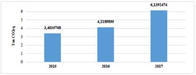Electric Power and Drinking Water consumption do not show a clear trend due to decreases shown month by month between 2015 and 2016, yet for the same month between 2016 and 2017 consumption rebounds and increases. In the case of Water, an increase is evidenced year after year. This may be due to the fact that the environmental programs implemented depend on an organizational culture, so despite the efforts made by the ITM’s EMS in the dissemination of the programs and training on the ideal and sensible use of water and energy resources, it is evident that the ITM community is not totally aware of them. However, when analyzing the consolidated electricity consumption per year, a decrease of 7% between the years 2016 and 2017 is evidenced. Thus, there is a decrease in the Carbon Footprint indicator of 17.73 Ton of CO2eq for this resource. Therefore, programs for the efficient and sensible use of water and energy resources can be considered as alternatives for the mitigation of GHG emissions in any organization.