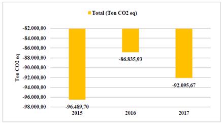 From an analysis of Fig. 15, the effectiveness of the environmental programs is clearly evident, since the sustainability indicator Carbon Footprint results in negative values for the years studied. This indicates a mitigation of GHG emissions, which brings the institution closer to the goal of being carbon neutral or "zero emissions".