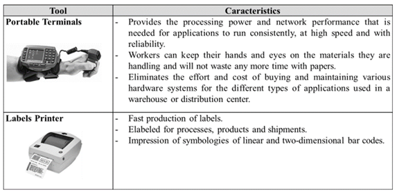 The application of this automatic identification system, in addition to the modifications to be done in informatics systems, requires a set of necessary tools for the execution of the processes. Table 1 shows the main technological devices to be acquired by the company with their characteristics and functions.