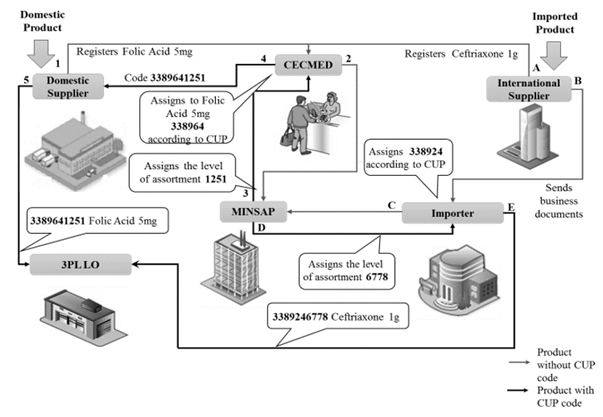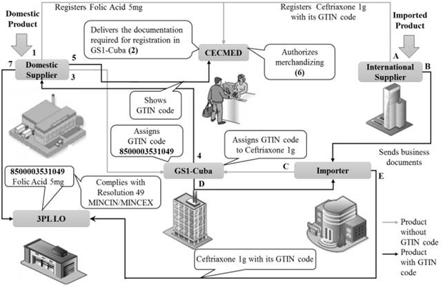 One result of the application in the study object has been knowing thoroughly by the health authorities in each country to see the exigency for using a unique identification of products as their direct responsibility in the logistics system. In American continent, it is outstanding the role played by the Food and Drug Administration (FDA) in the United States through rules and regulations contained in Federal Registries, likewise the National Sanitary Surveillance Agency (ANVISA in its acronym in Portuguese) in Brazil, and the National Drugs, Food and Medical Technology Administration (ANMAT in its acronym in Spanish) in Argentina. Then the requirement of the CECMED to national laboratories and the Importing Units of the Superior Organization and the Ministry of Public Health (MINSAP in its acronym in Spanish), which are the drug providers of the LSP about the use of the GS1 standard codes in the different packaging levels is necessary; for this, it is important to comply with the Joint Resolution MINCIN/MINCEX 1/2001, where it is required that any traded product in Cuba must be registered in the Chamber of Commerce, where a GTIN code by GS1-Cuba is assigned. The CECMED must watch over this when approving the merchandising of products, and then claim to be printed on the packaging.