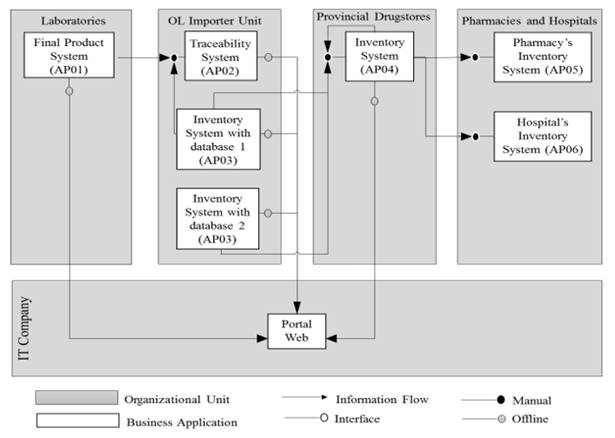 The main tools used during the investigation were: The Ishikawa Diagram and the V-63 Visualization Pattern. The first one is used to show the current problems of the traceability system in the company and the second one to analyze the information flows among the existing business applications.